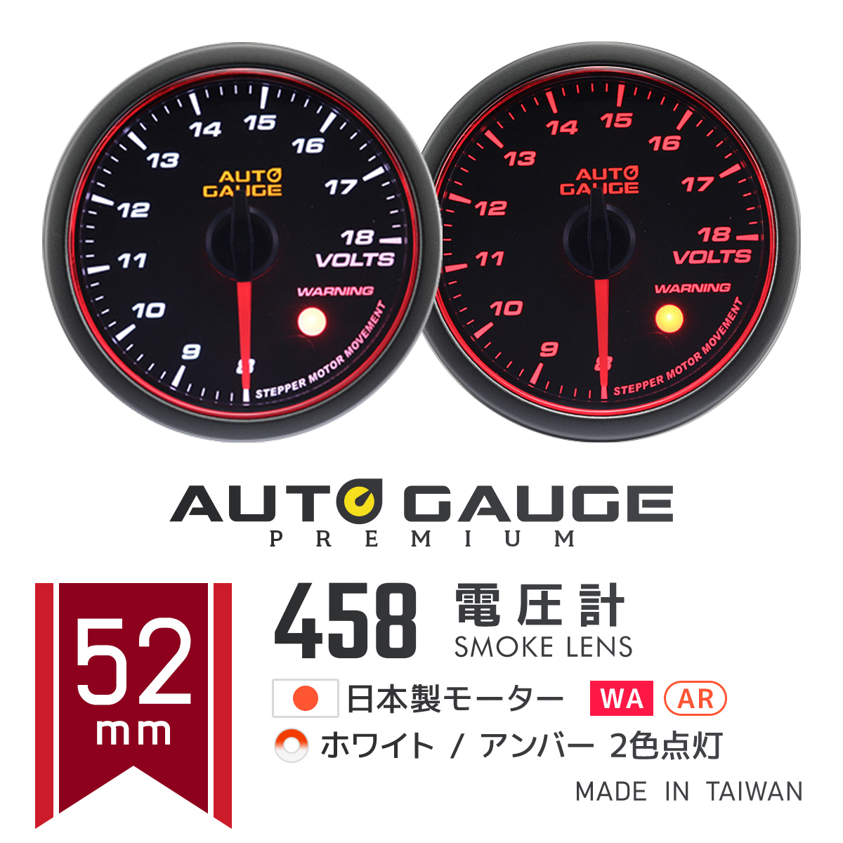 電圧計 新オートゲージ プレミアム 52mm 日本製モーター 追加メーター Aリンク ワーニング 静音 2色 ホワイト/アンバー 458シリーズ
