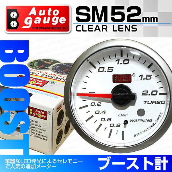 オートゲージ AUTOGAGE 52mm SM ブースト計 ワーニング機能付 白 後付け 追加メーター