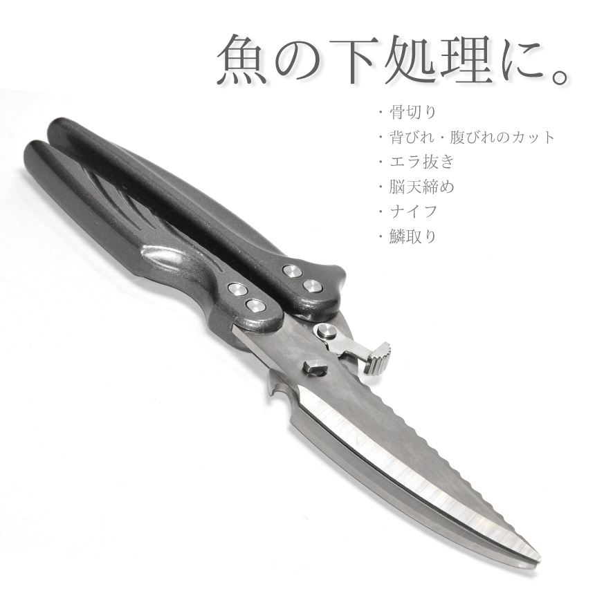 【並行輸入品】 万能 ハサミ 魚 下処理 脳締め エラ抜き 骨切り 鱗取り ナイフ 栓抜き キッチンバサミ 調理器具 キッチンツール 洗える