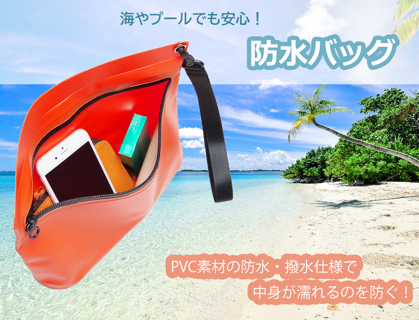 防水バッグ ポーチ カバン 撥水 防水 海 川 プール 収納 PVC コンパクト シンプル アウトドア ストラップ 小物入れ 持ち運び
