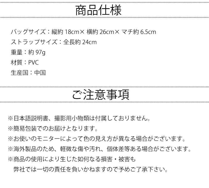 バッグサイズ:縦約18cm×横約26cm×マチ約6.5cm