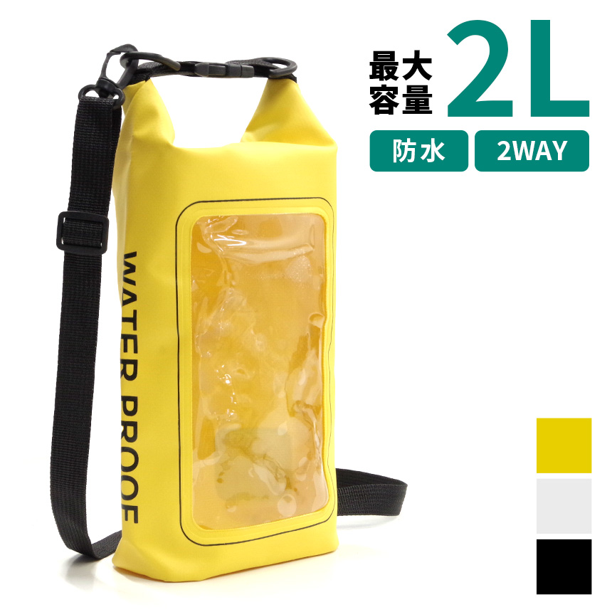 防水 バッグ ドライバッグ 2L ショルダー 手提げ 肩掛け 斜め掛け スマホ 収納 バケツ 海 プール 海水浴 水遊び 自転車 アウトドア