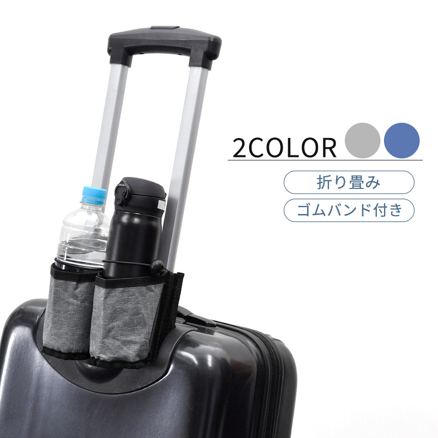 スーツケースのハンドル部分に装着できるドリンクホルダーです。