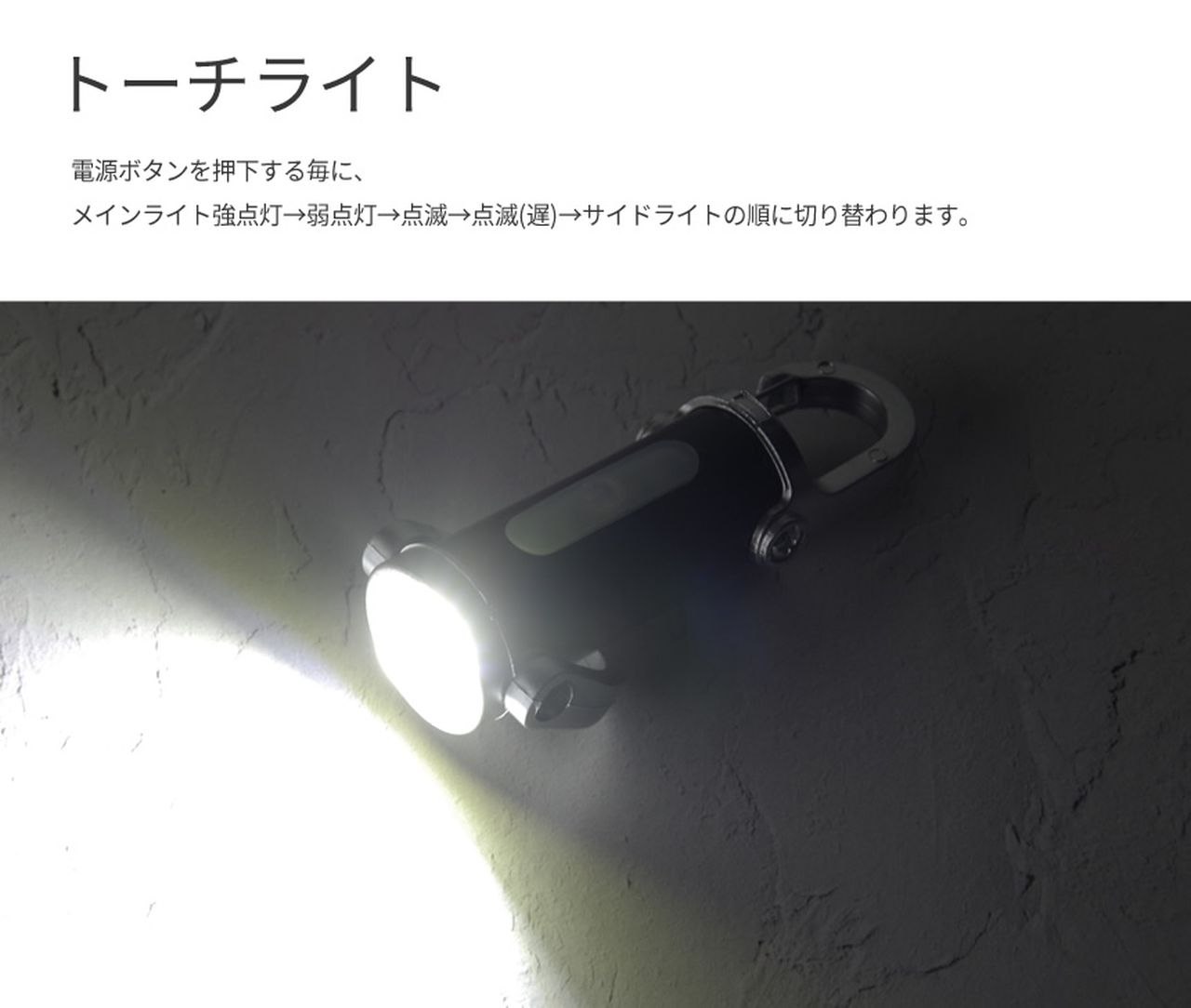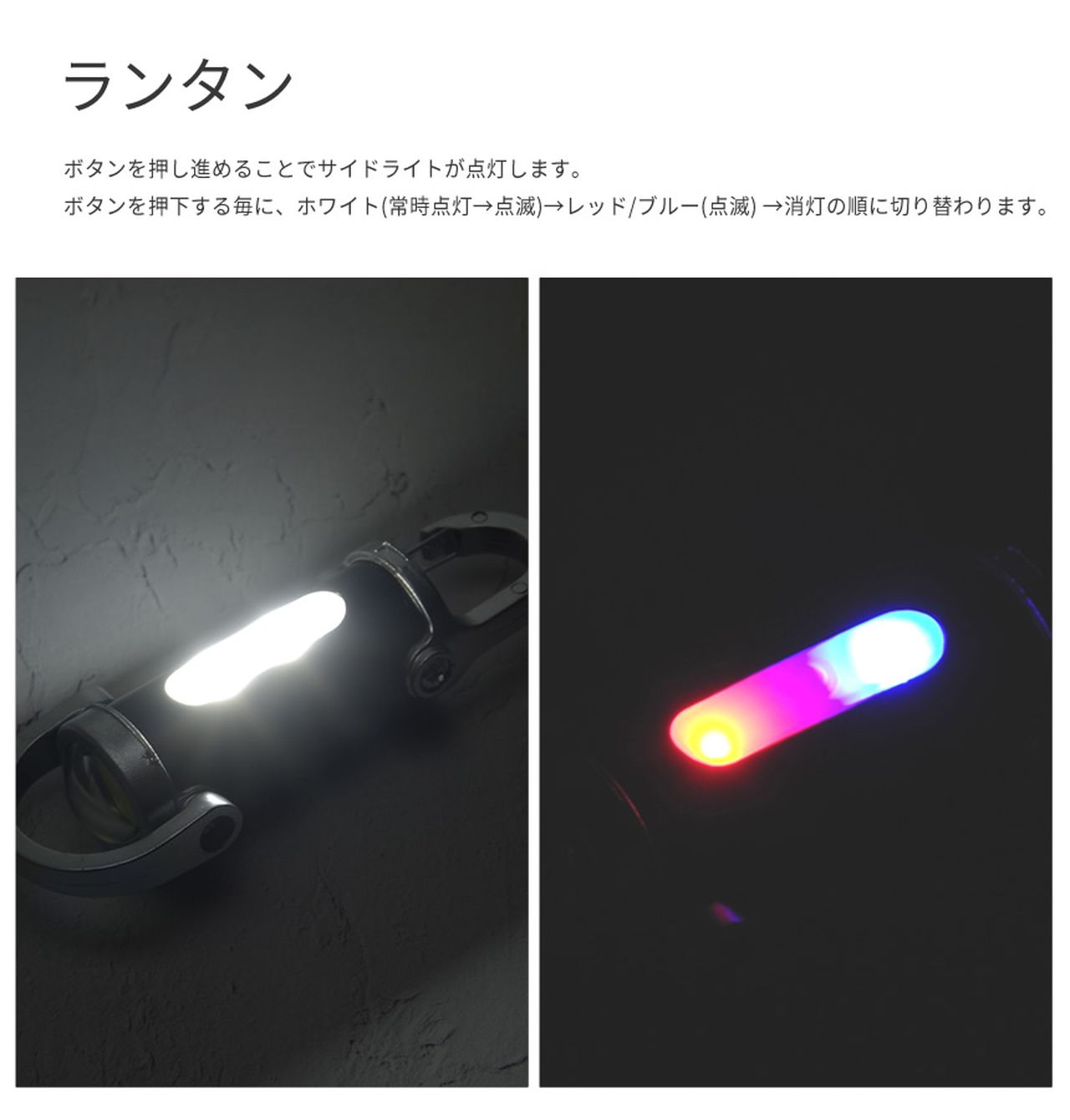 トーチライト、ランタンの2種類の点灯モードを搭載。