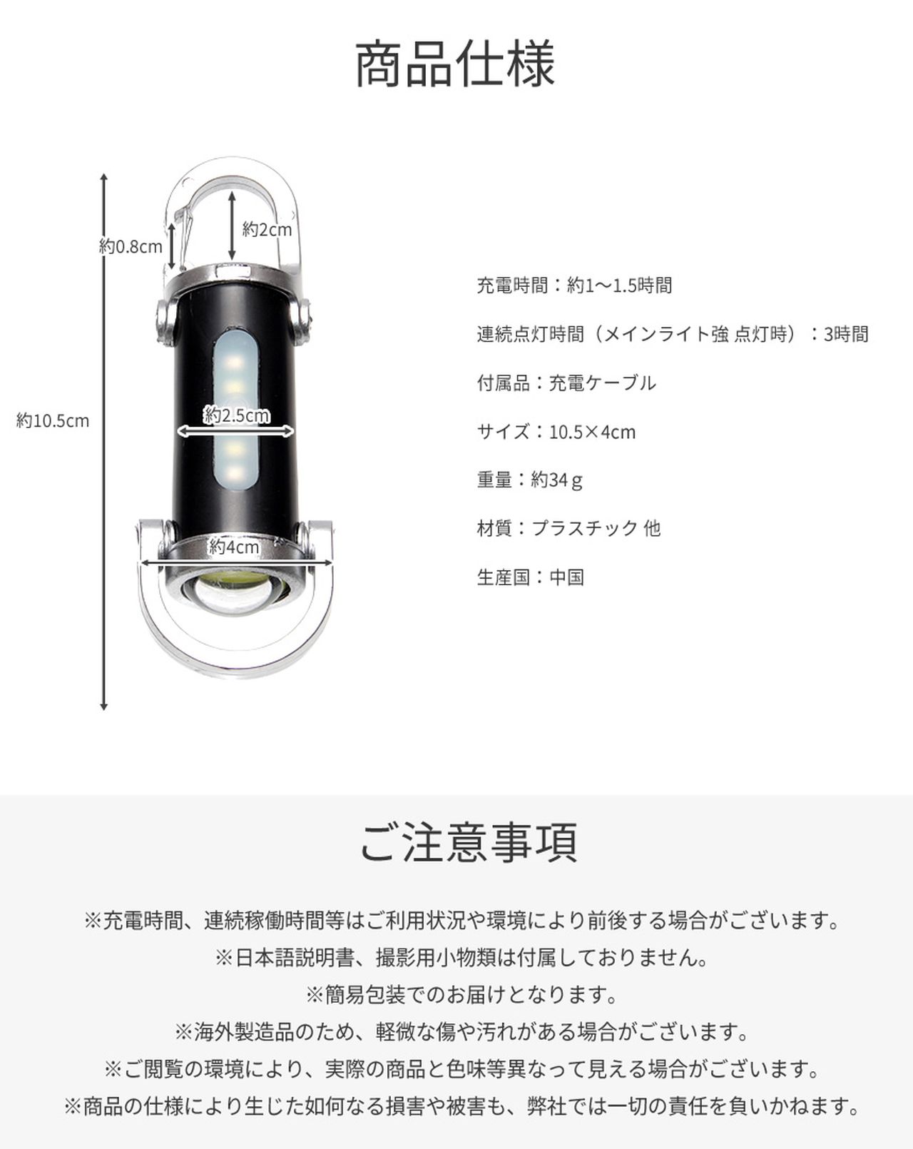 LED ライト 小型 トーチライト USB 充電式 ミニ ランタン 懐中電灯 カラビナ 携帯 照明 アウトドア キャンプ
