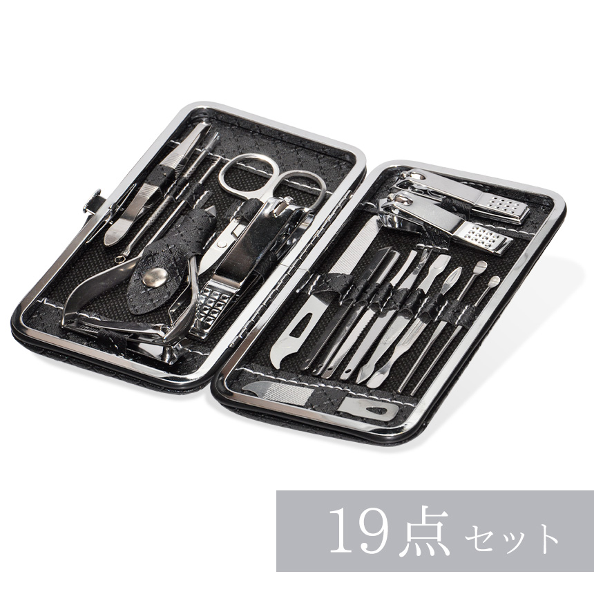 定期的な爪のお手入れや普段の身だしなみチェックに使用できる、ネイルケア19点セット。