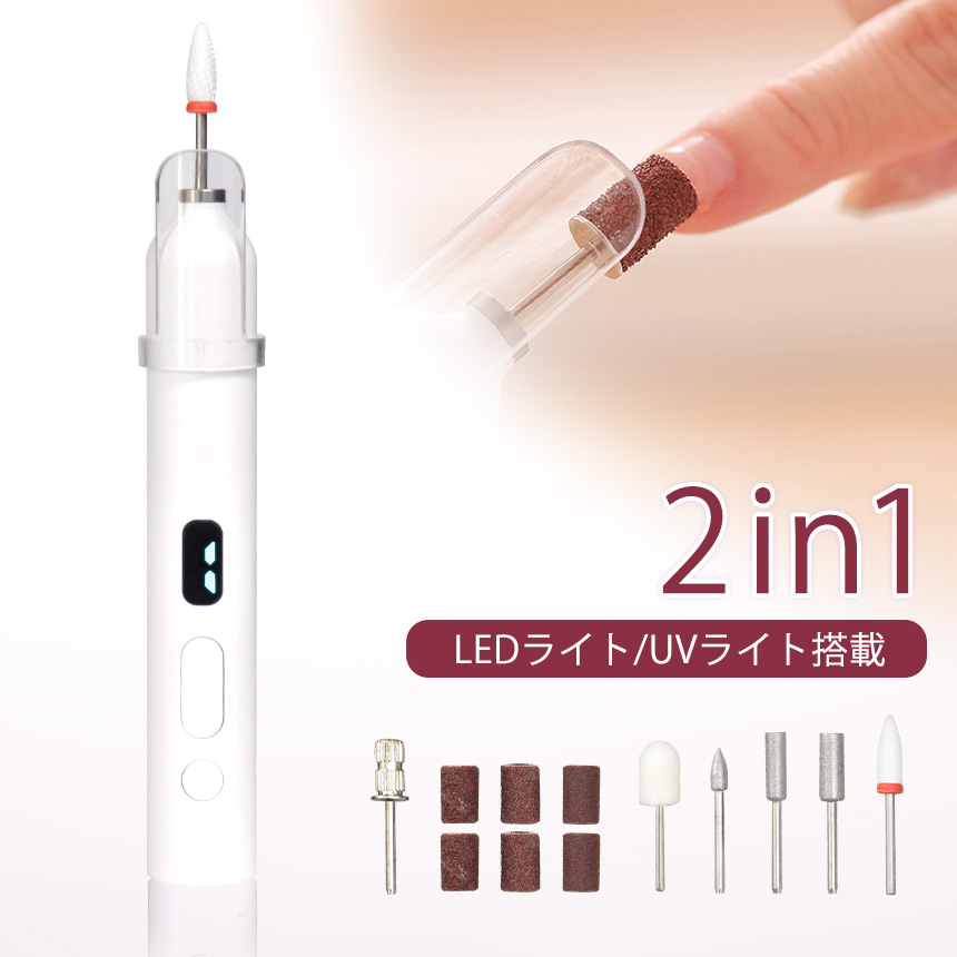 【並行輸入品】 ネイルマシン 電動 ネイルポリッシャー LED ライト UVライト ネイルドライヤー 爪磨き ネイルオフ ジェルネイル セルフ ケア 自宅 ビット 6種類