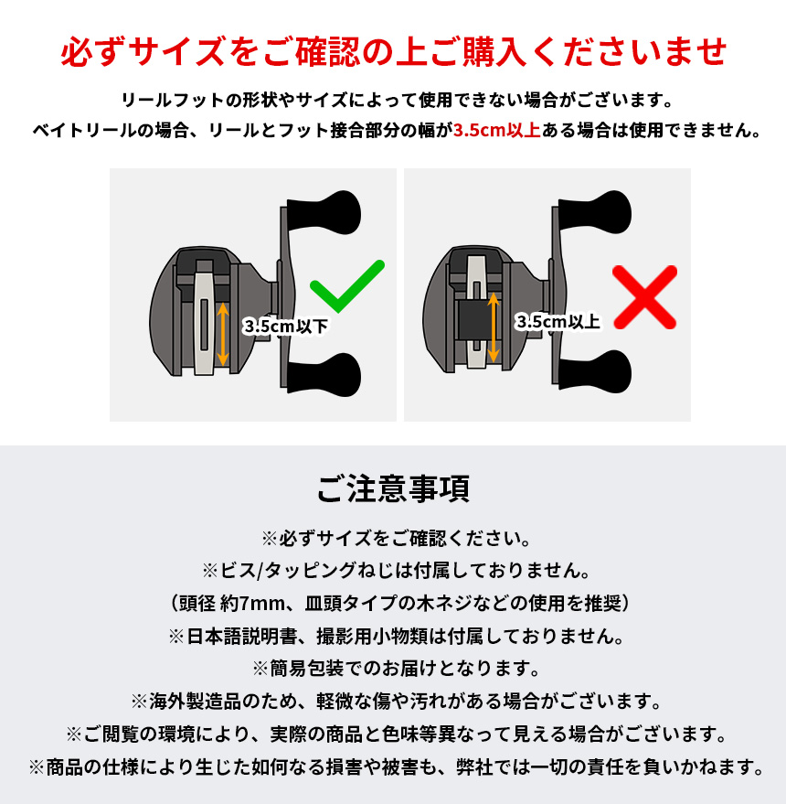 ※リール・フット部の接合部分が3.5cm以上は使用不可
