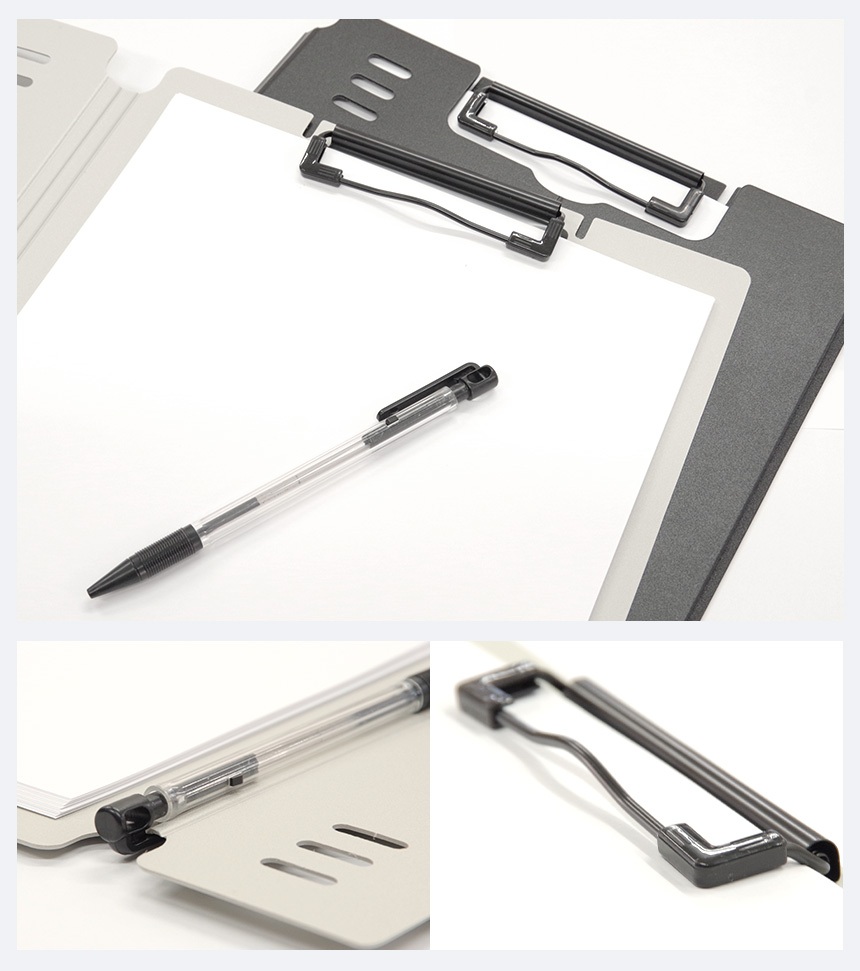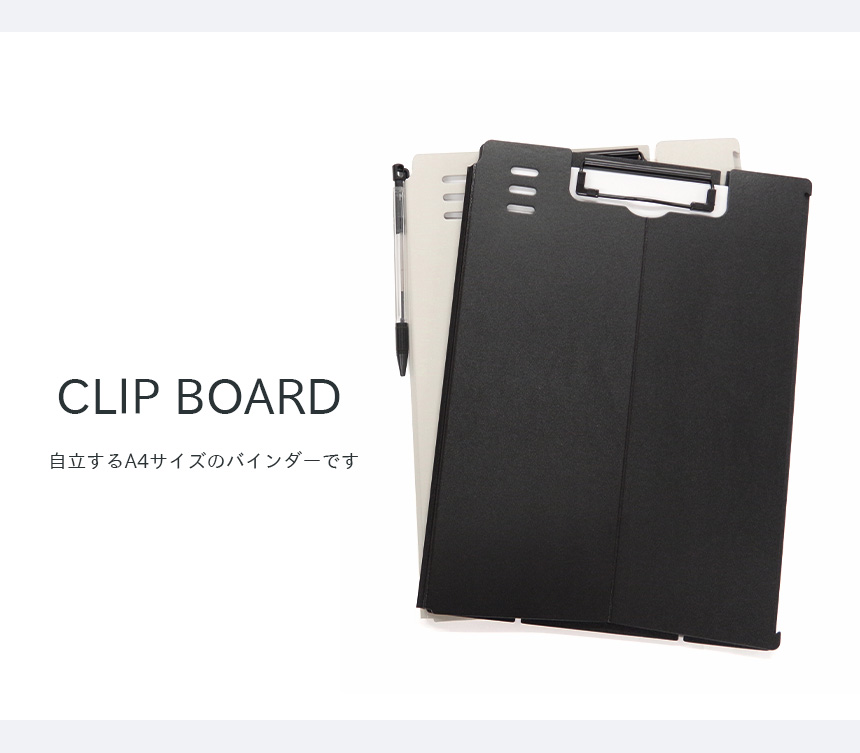 自立するA4サイズのクリップボードです。