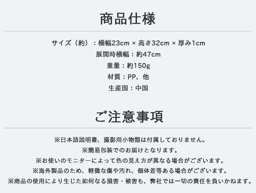 サイズ(約):横幅23cm × 高さ32cm × 厚み1cm