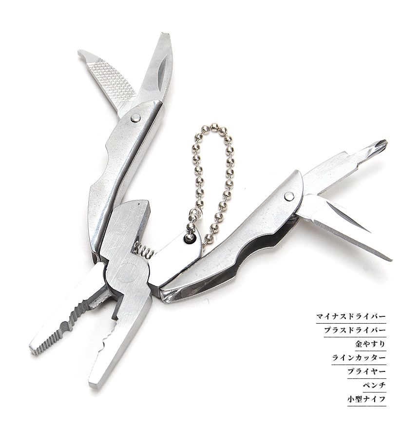 マルチツール 小型 キーホルダー ステンレス キャンプ 工具 ナイフ ドライバー ペンチ 釣り