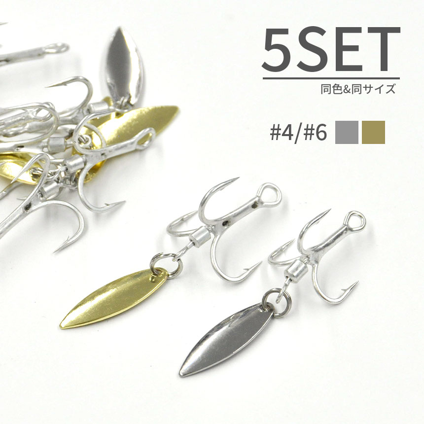ブレード トレブルフック トリプル フック 太軸 5個セット #4 #6 釣り 道具 フィッシングツール 金属 3本針 釣り針 ルアー用