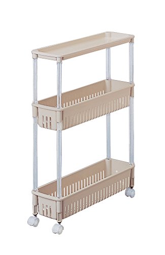 サンコープラスチック(SankoPlastic) すき間収納 ベージュ 約幅15×奥行50×高さ65cm テーブルワゴン 3段 超スリム