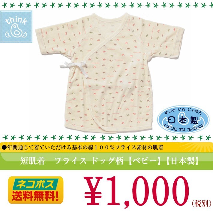 ベビー服 新生児 短肌着 シンクビー【フライス】ドッグ柄 日本製 ネコポス便送料無料 ラッピング無料