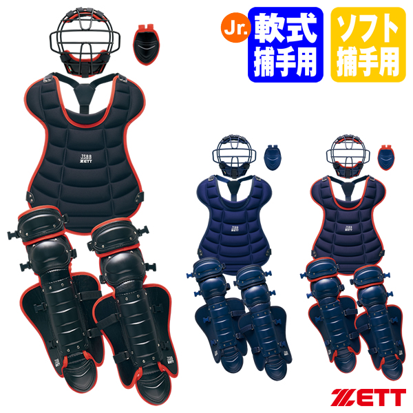 ゼット(ZETT) BL703SET ジュニア軟式・ゴムソフトボール キャッチャー防具 4点セット マスク プロテクター レガーツ スロートガード キャッチャーセット 野球