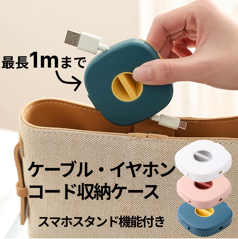 ケーブル 収納 ケース イヤホンコード 整理 まとめる ケーブルボックス ケーブルホルダースマホホルダー コンパクト 軽量 携帯便利 1mまで収納可能