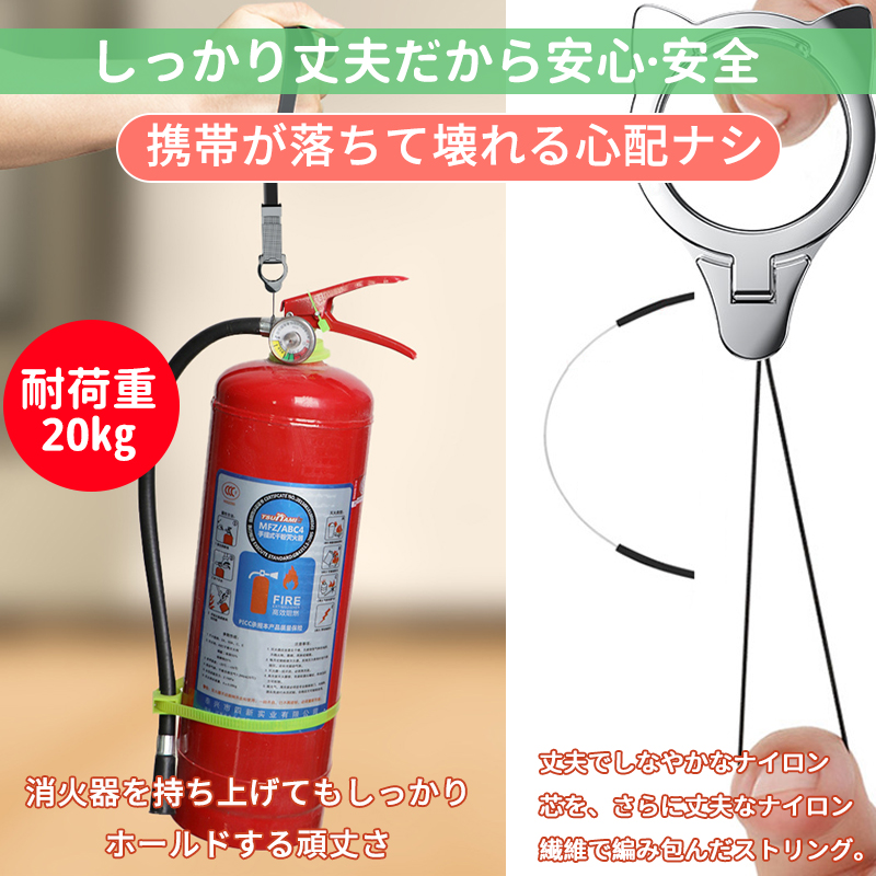 耐荷重20kg。消火器を持ち上げてもしっかりホールドする頑丈さ。