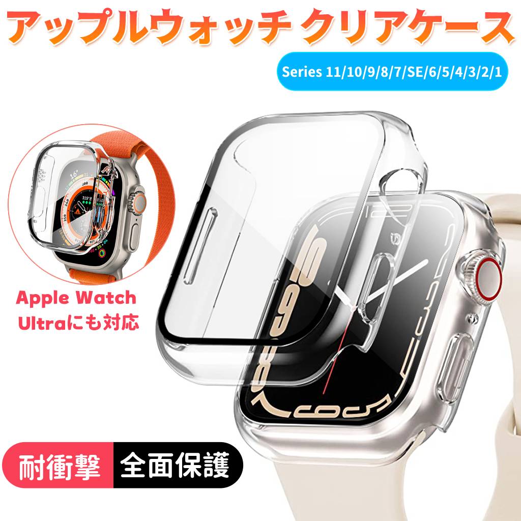 アップルウォッチ カバー 保護 ケース Apple Watch Ultra 11 10 9 8 7 SE 6 5 4 3 2 1 49mm 46mm 45mm 44mm 42mm 41mm 40mm 38mm 透明 ガラス フィルム