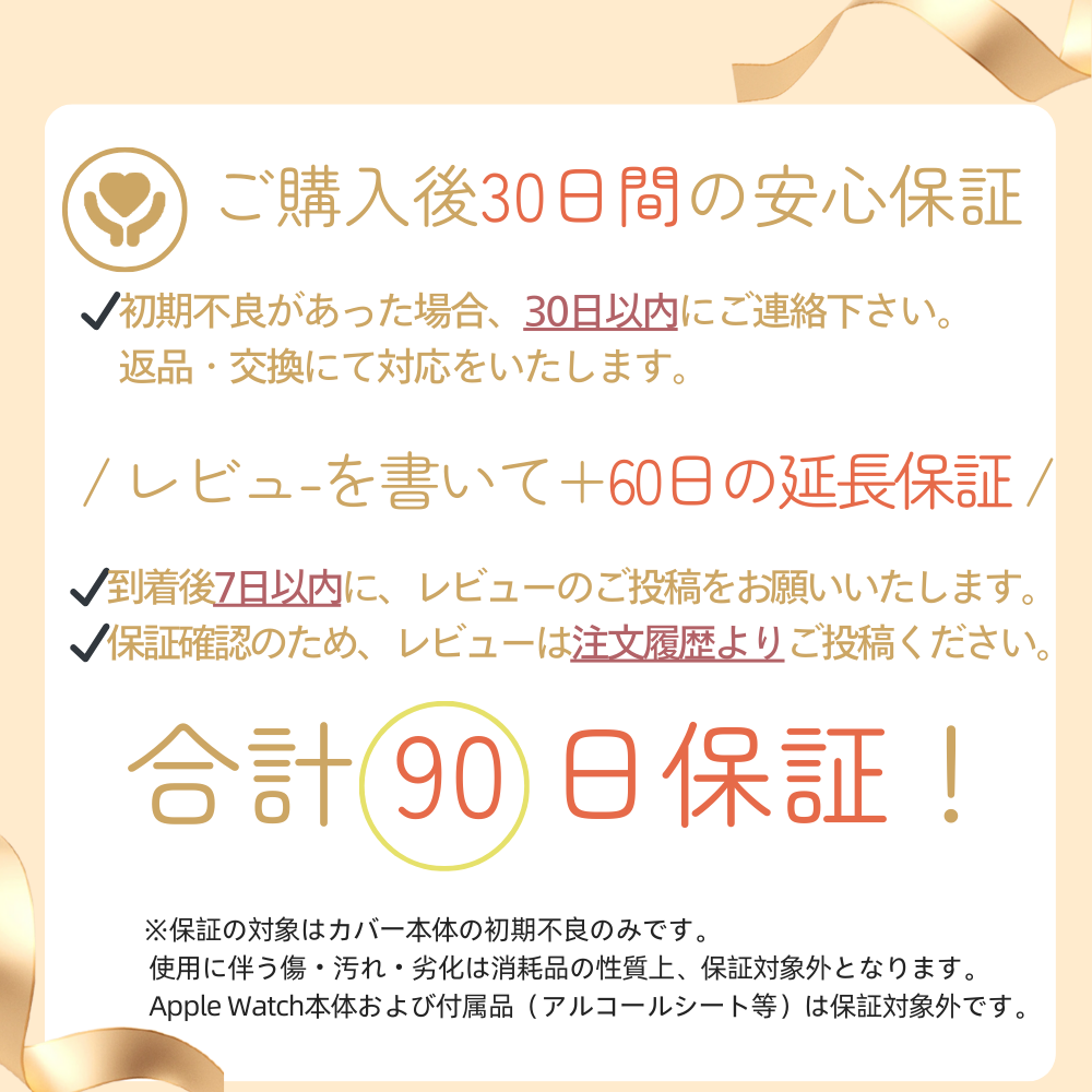 耐久性のある、上質な手触りいい素材を使用しております。独特な技術により、衝撃吸収層が外部からの衝撃を吸収し、画面へのダメージを最低限まで抑え、大切なアップルウォッチをしっかりと守ります。