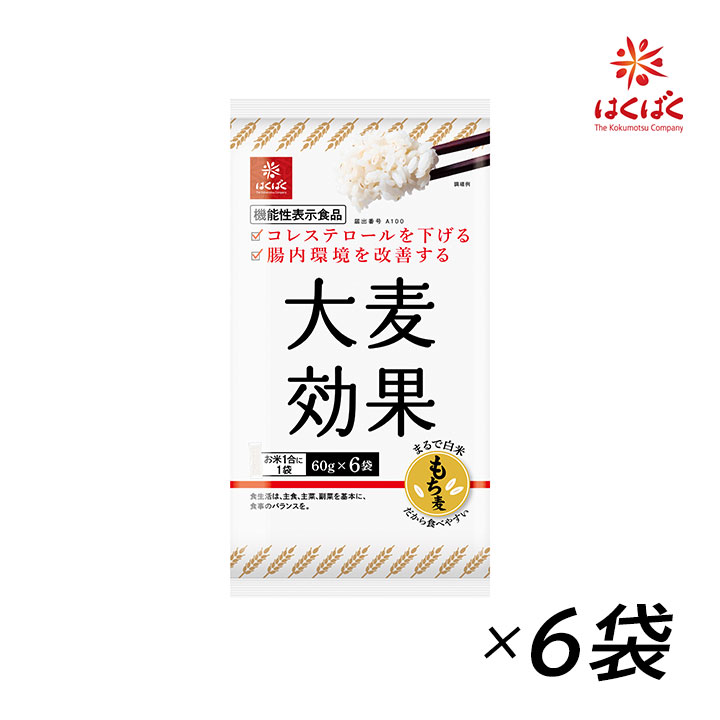 もち麦 大麦効果 360g(60g×6袋) 6袋セット 機能性表示食品 米粒状 米粒麦 コレステロールを下げる 腸内環境改善 お米と一緒に炊くだけ 食物繊維 はくばく 爆買
