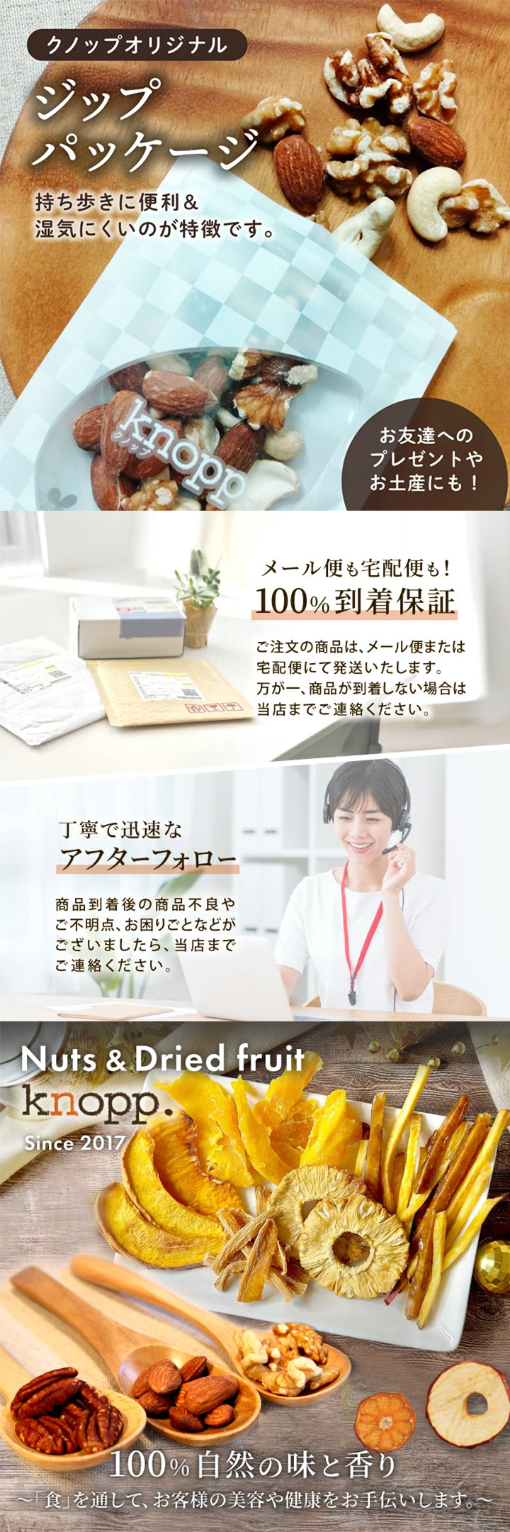 ナッツ&ドライフルーツ専門店【クノップ】が厳選したアメリカ産くるみを、風味と食感を活かしたロースト製法で仕上げました。無塩・無添加・無香料なので、自然食品にこだわる方も安心してお召し上がりいただけます。
