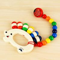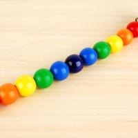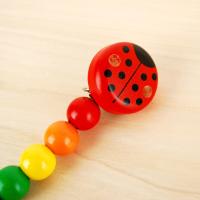 ビーズの先にある紐におしゃぶりをつけることが出来る木のおもちゃホルダーです。