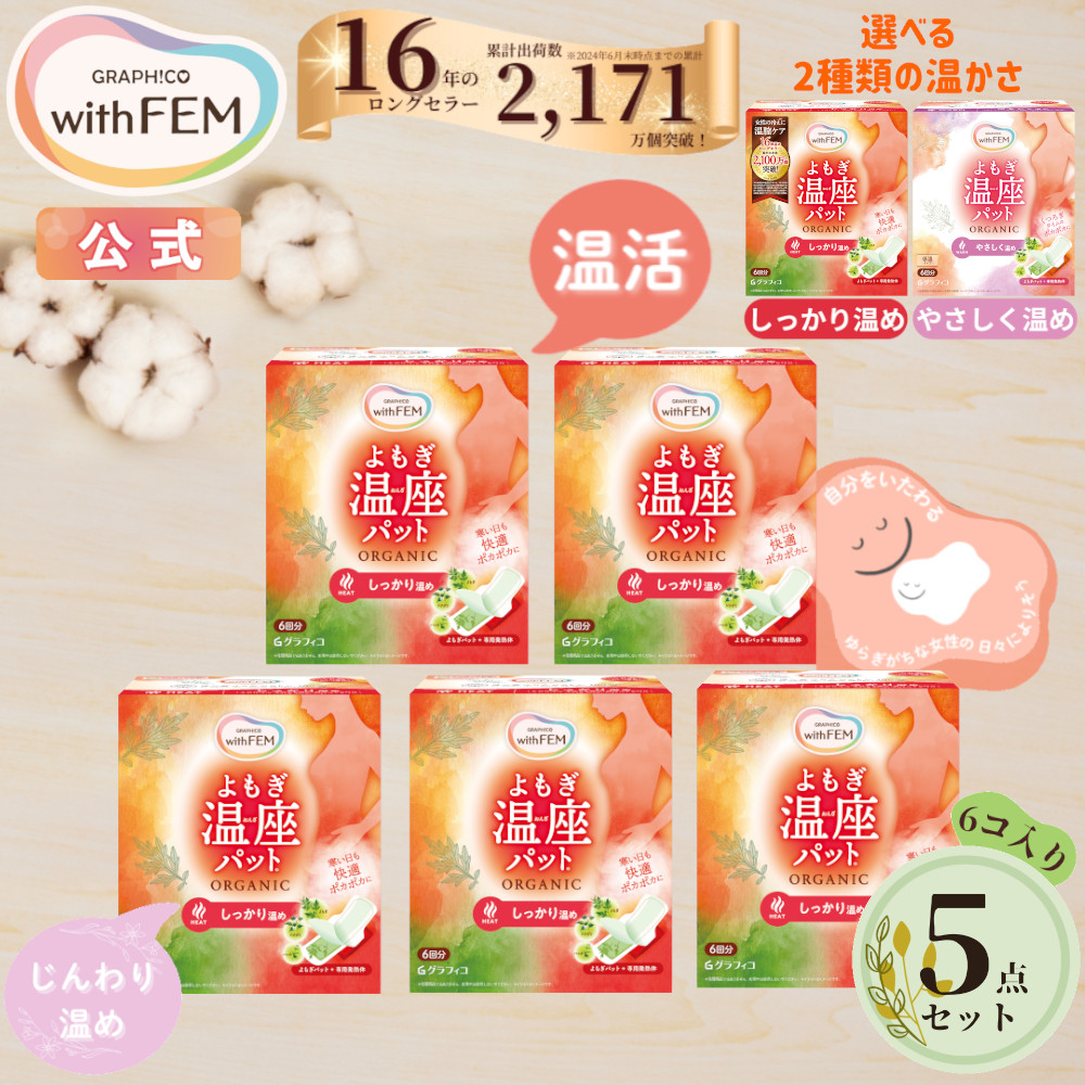 よもぎ蒸し よもぎパット 冷え 対策 ウィズフェム よもぎ温座パット 6個入 × 5箱 セット 30個 温膣ケア おまたカイロ 温熱シート 温活 妊活・応援アイテム