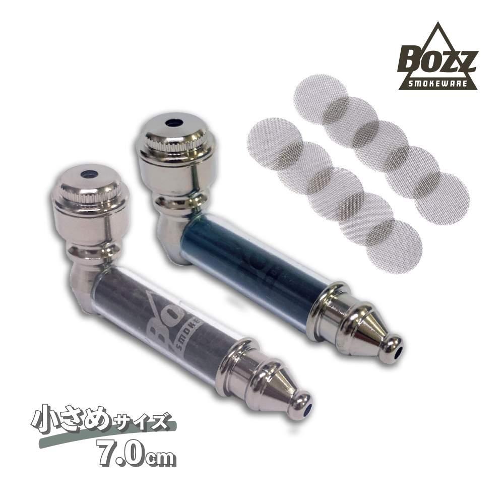 メール便可 喫煙具 【小さめサイズ】 BOZZ メタルハンドパイプ フタ付き スクリーン10枚付