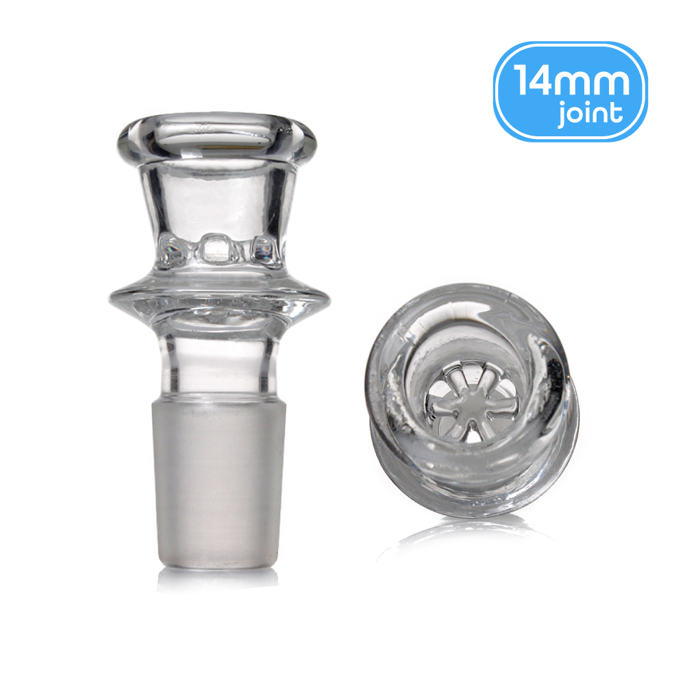 14mmジョイントのボング用ガラス火皿です。ハニカムスクリーンがはめ込まれています。