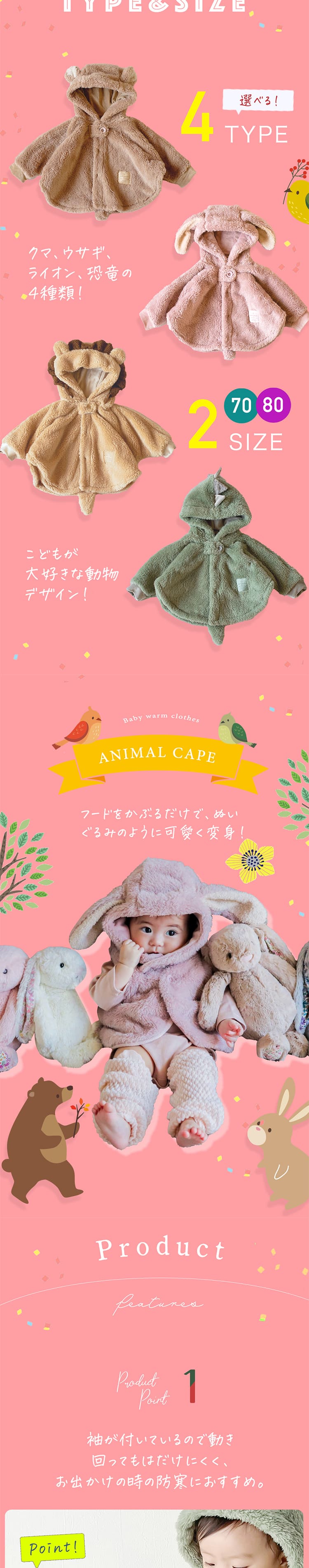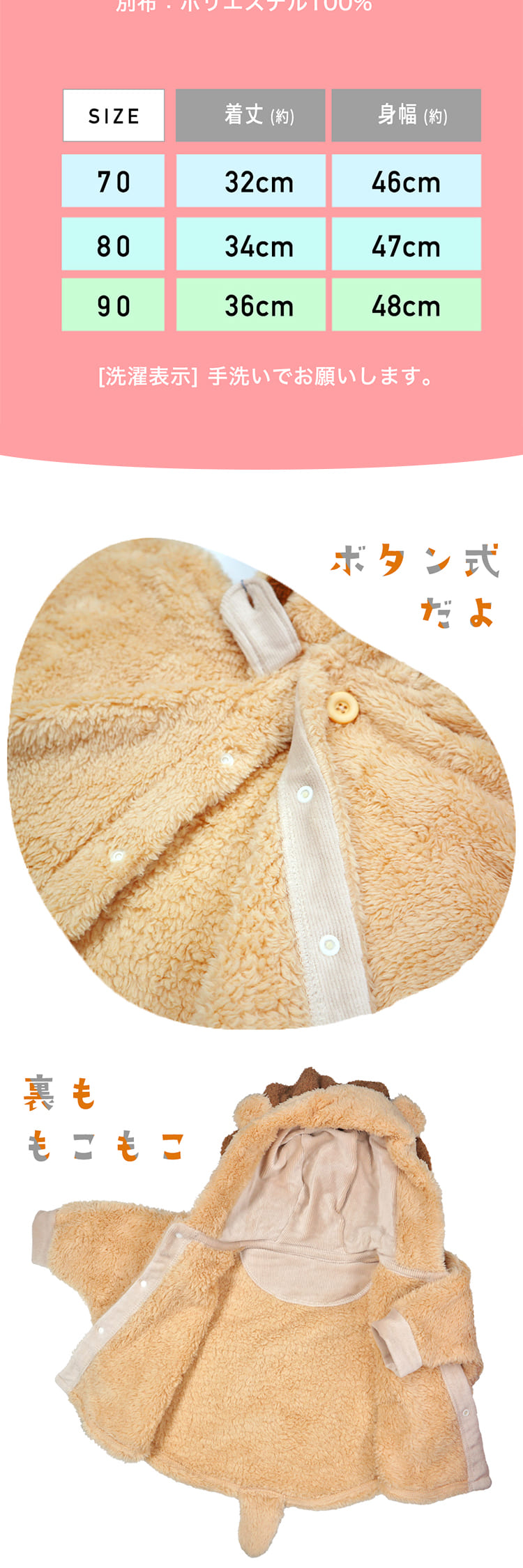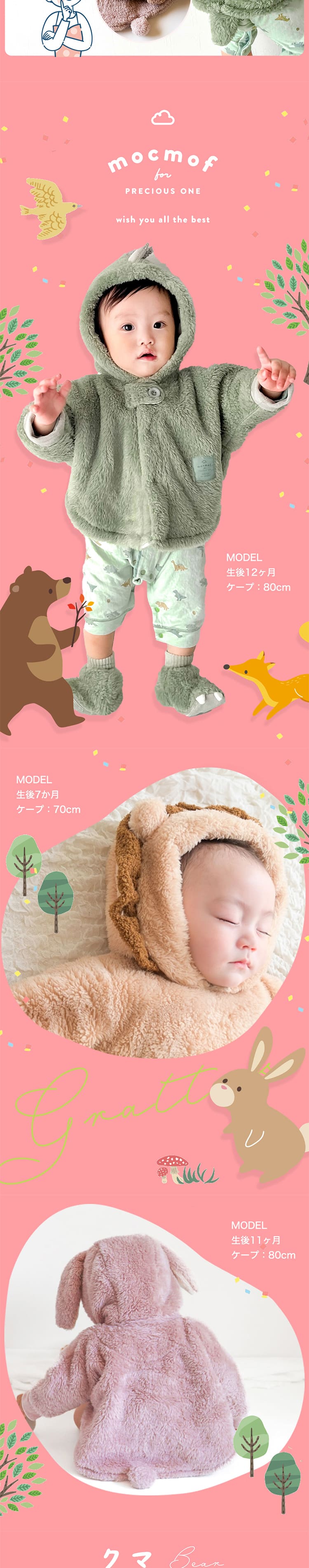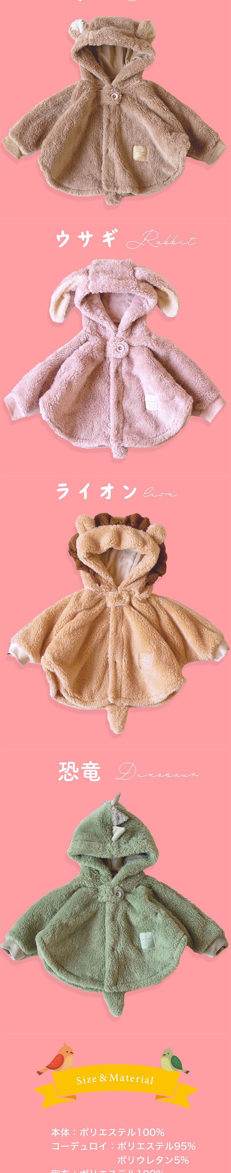 | サイズ) 70サイズ 80サイズ カラー) らいおんさん 怪獣さん うさぎさん くまさん |