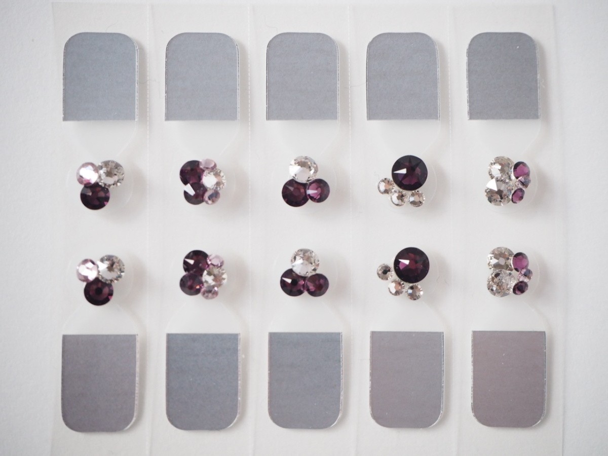 『ワンタッチジュエル スワロフスキーデコデザイン パープル系』 オリジナル耳つぼジュエリー 自社開発 イヤージュエル チタン粒 耳つぼシール