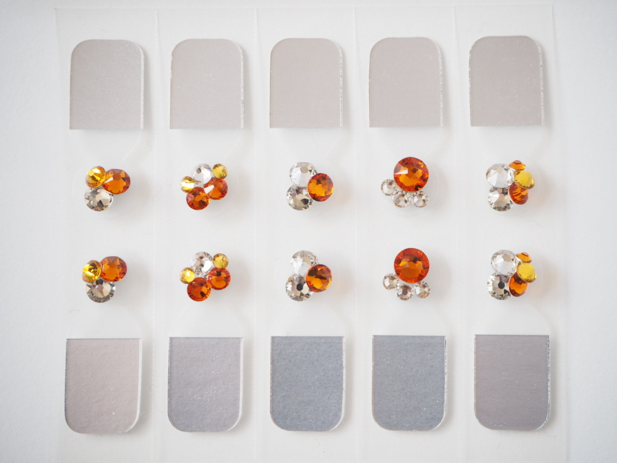 『ワンタッチジュエル スワロフスキーデコデザイン オレンジ系』 オリジナル耳つぼジュエリー 自社開発 イヤージュエル チタン粒 耳つぼシール
