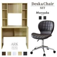 パソコンデスク オフィスチェア セット 在宅勤務 テレワーク PCデスク 収納 棚付き コンセント 高さ調整 上下昇降 デザイナーズ アルク90cm メナドPU