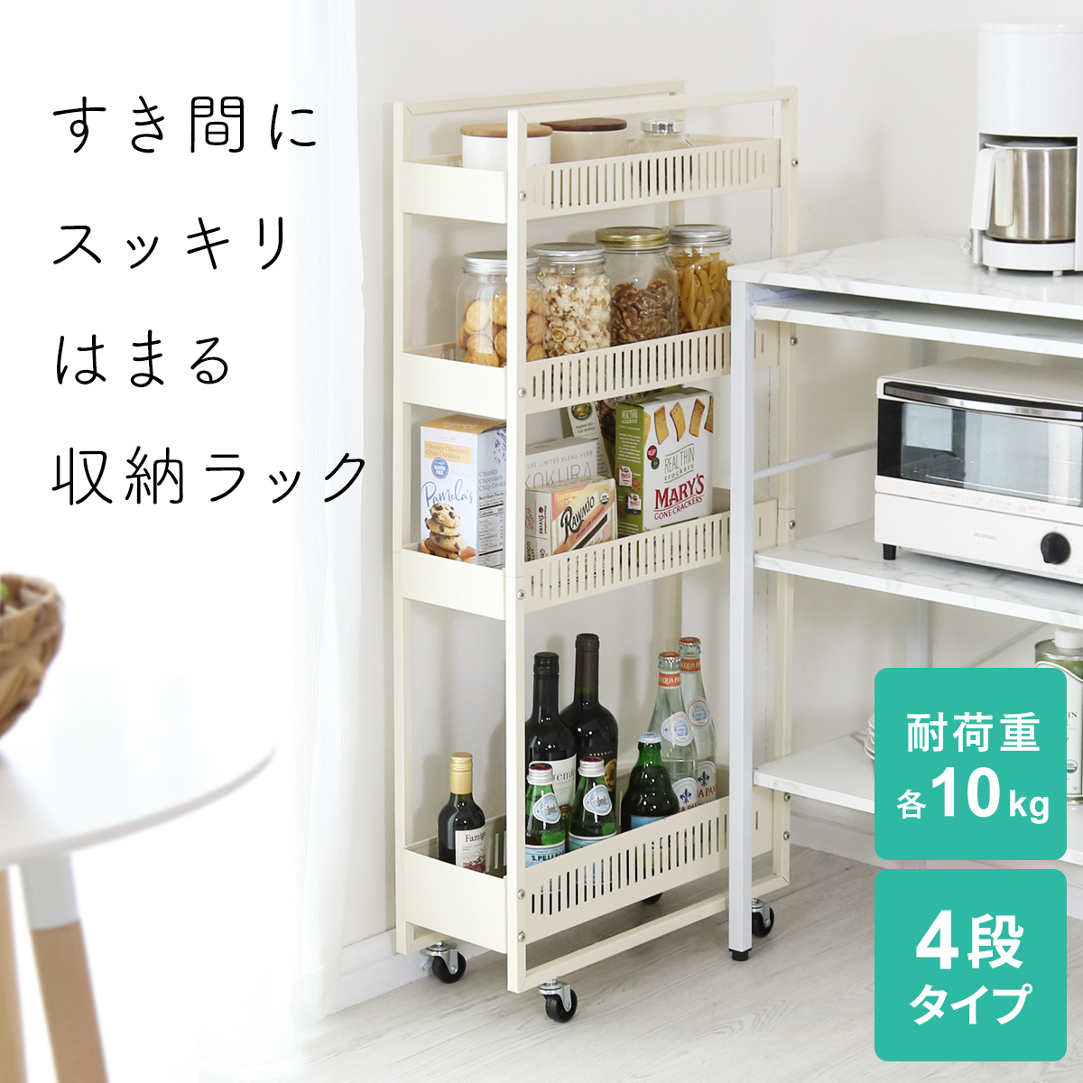 食器やフード、ドリンクなどをたっぷり収納でき、キッチン周りをすっきりと整えることができます。