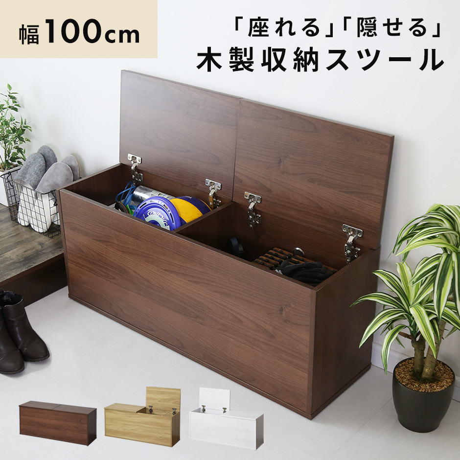 耐荷重は80kgあるので玄関先でのベンチとしても最適です。靴の着脱が楽になるだけでなく、毎日使用する通勤バッグや通学バッグを収納したり、普段履かないシューズ類を収納したり、色々な用途で活躍します。