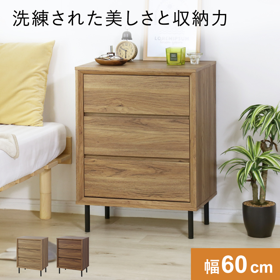 3杯の引き出しが備わっており、日常生活で使用する小物や衣類、書類などをしっかりと収納できます。引き出しは深さがあり、容量も十分にあるため、大きめのアイテムやかさばるものもすっきりと片付けられます。中が見えないので下着などの収納にも最適で、おしゃれに生活感を隠してくれます。