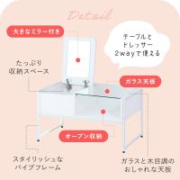 天板は幅70cmと十分なサイズ感があるので、テーブルとして使用するときにパソコンや書類を広げても伸び伸び快適に作業できます。ドレッサーとして使うときは化粧品やアクセサリーをたくさん並べても余裕の広さです。