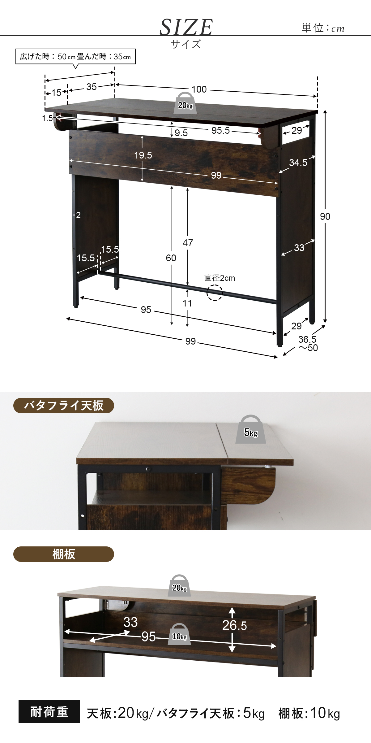 片側が折りたためるバタフライ天板を採用。普段は省スペース、必要なときだけ天板を広げて作業や食事スペースを確保できます。来客時や補助台、簡易デスクとしても活躍する便利な設計です。