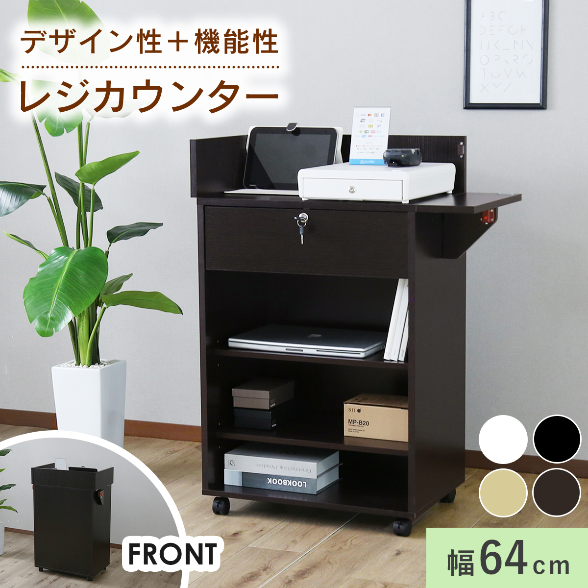 幅64cmのコンパクトな設計ながら、収納力と機能性を兼ね備えた多機能カウンター。省スペースでもしっかり活用できるため、狭い店舗やオフィスでも設置しやすいのがポイントです。レジカウンター、受付カウンター、作業台として多用途に活躍し、スペースを有効活用できます。シンプルなデザインなので、どんなインテリアにも馴染みやすく、カフェやサロン、ショップなど、さまざまなシーンで活躍。限られたスペースでも機能的に使える設計で、開店準備やオープン準備にも最適です。