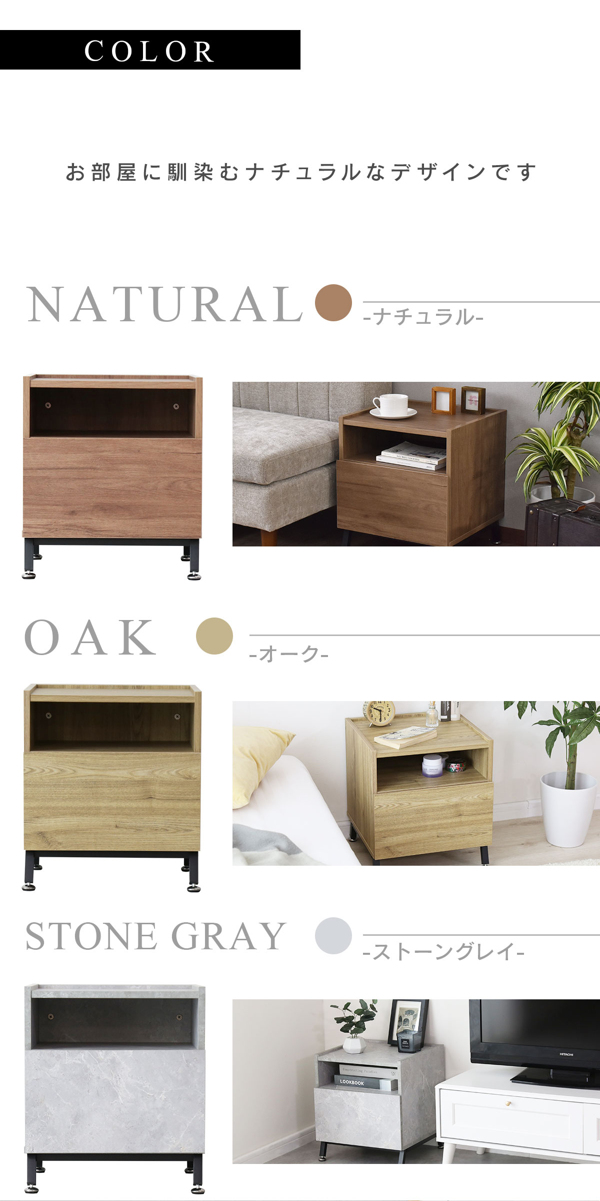 引き出しにはスライドレールを採用しており、軽い力でスムーズに開閉可能。奥までしっかり引き出せるので、収納したアイテムが取り出しやすく、整理整頓もラクになります。リモコンや文房具、ノートやメガネなど、よく使う小物をすっきり収納でき、見た目もスッキリ。ストレスフリーな使い心地を実現します。