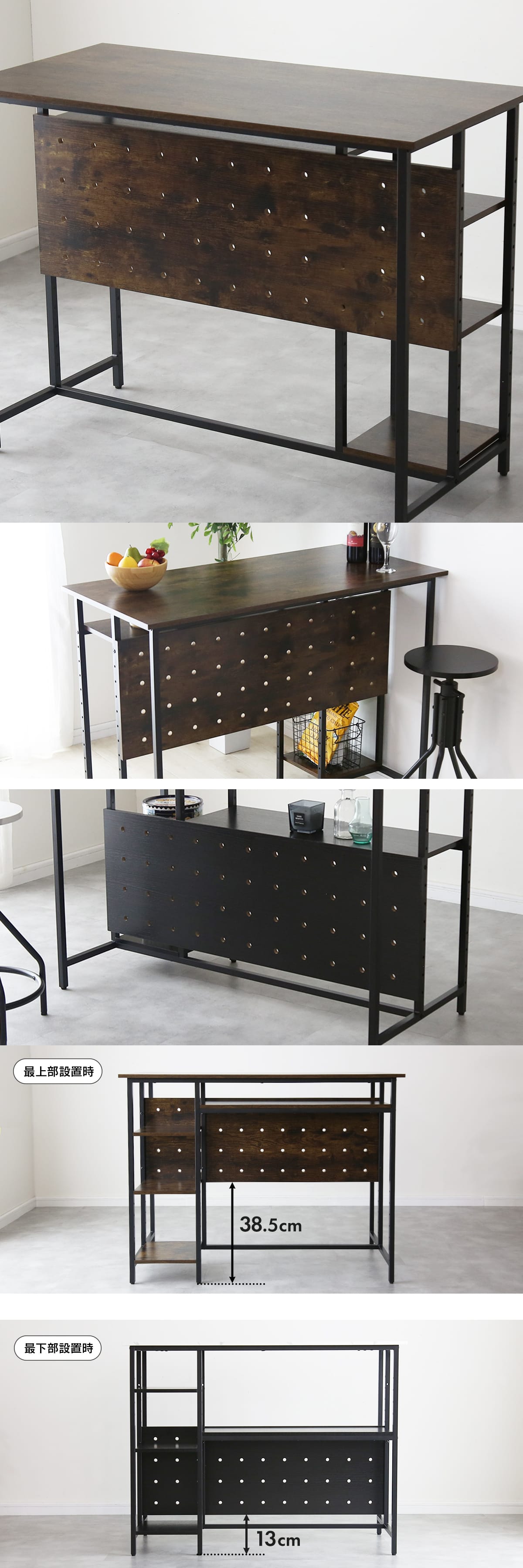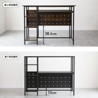 収納力を求める方にとって嬉しいのが、天板下に設けられた4枚の可動式棚板です。高さを自由に調整できるため、生活スタイルや収納するアイテムに合わせて使いやすくアレンジ可能。さらに、この棚部分は左右お好みの方に取り付けられる仕様になっているため、設置場所や間取りに合わせて柔軟にレイアウトできます。例えば、書類やノートパソコンなどの仕事道具をまとめて収納したり、食器や調理器具を整理してキッチンカウンターとして活用したりと、使い道は無限大です。お子様のいるご家庭では、キッズ用のおもちゃや絵本をまとめて置くのにも便利。ナチュラルな木目やモダンな大理石調デザインと組み合わせることで、収納棚でありながらお洒落なインテリアの一部としてお部屋を演出できます。※メッシュバスケットは付属しません