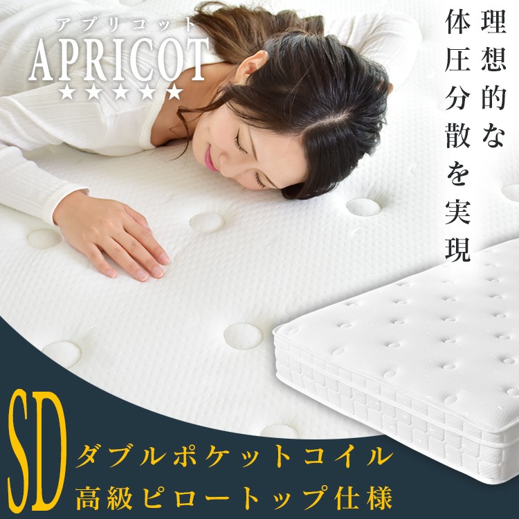 マットレス セミダブル 腰痛対策 高反発マットレス ベットポケットコイル ピロートップ 厚さ26cm アプリコットSD 北欧 ドリス