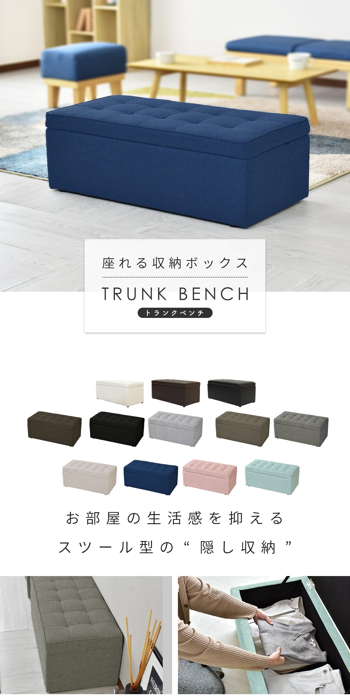 収納付きスツール トランクベンチ【Trunk Bench】
