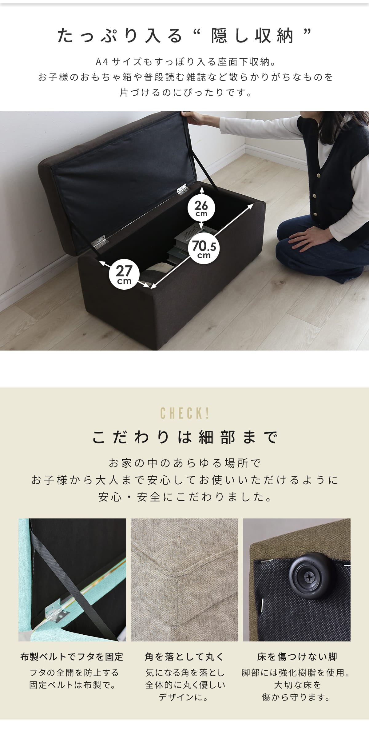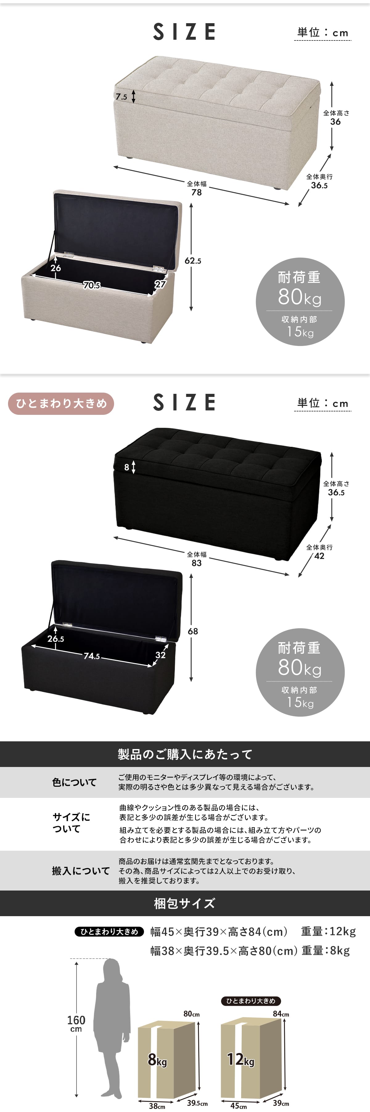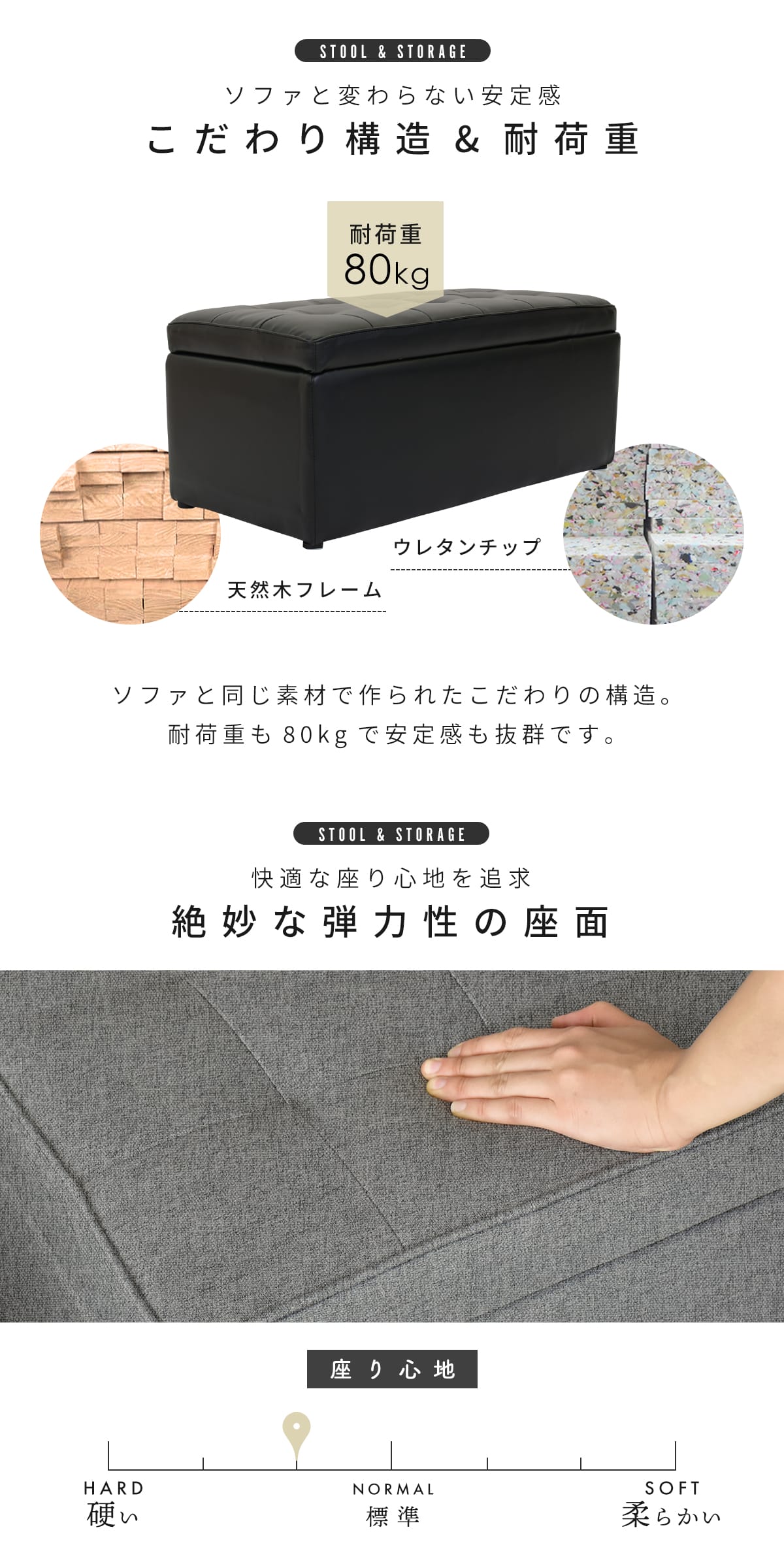 座面:80kg/収納内部:15kg