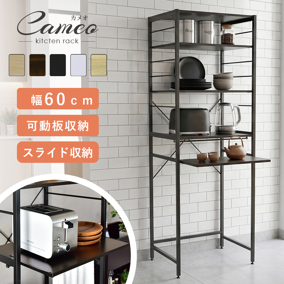 キッチン収納 おしゃれ キッチンラック ゴミ箱上ラック レンジラック シンプル キッチンボード 収納棚 スライド棚 カメオ 北欧 ドリス