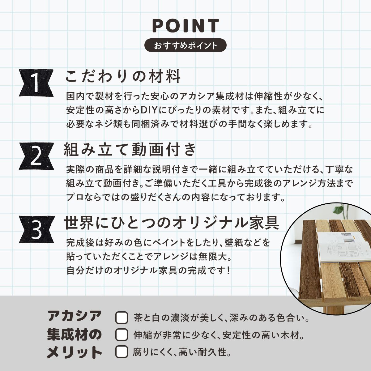 | 【セット商品について】 | ソファとテーブルセット、デスクと収納セット、ダイニングセット等のセット商品もございます。 お部屋の広さやシーンに応じたセットをご用意いたしました。 |