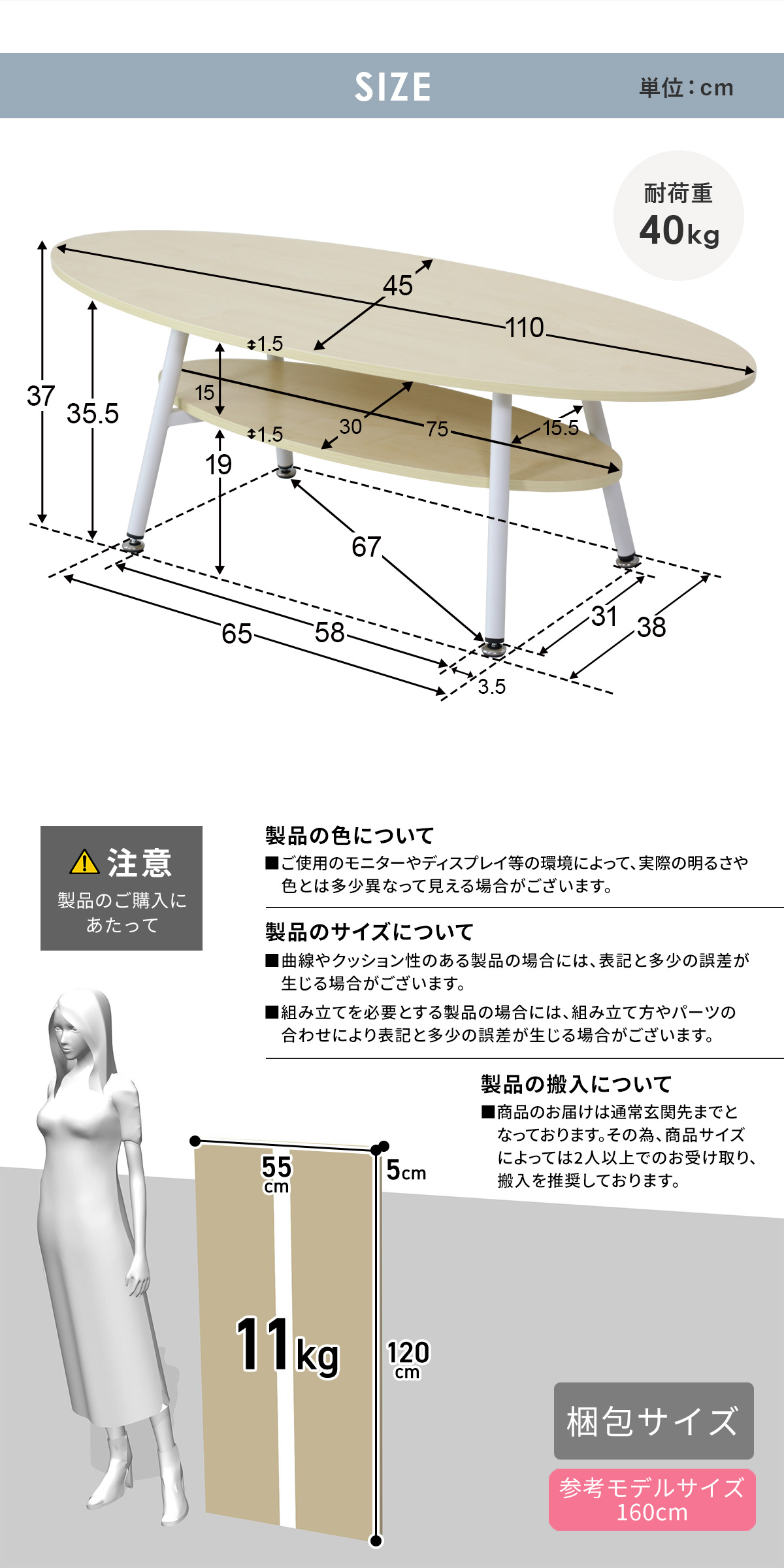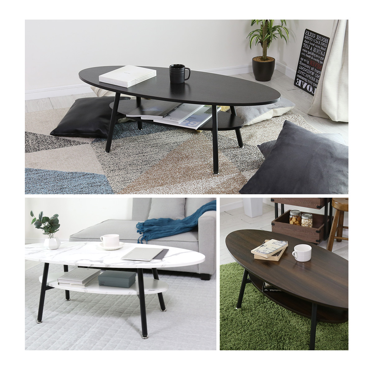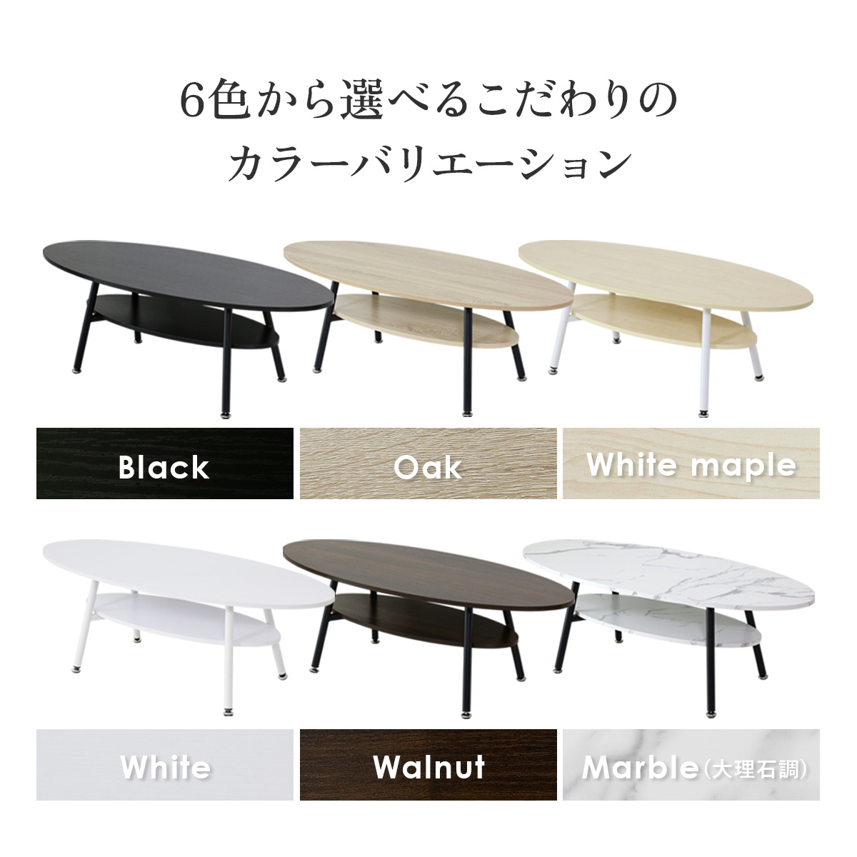 柔らかな曲線が魅力のオーバル形状はインテリアのアクセントになり、置くだけで優しい印象のお部屋を演出します。広々とした天板は、PC作業や勉強、食事やメイクシーンでも十分な余裕があり快適にご使用いただけます。