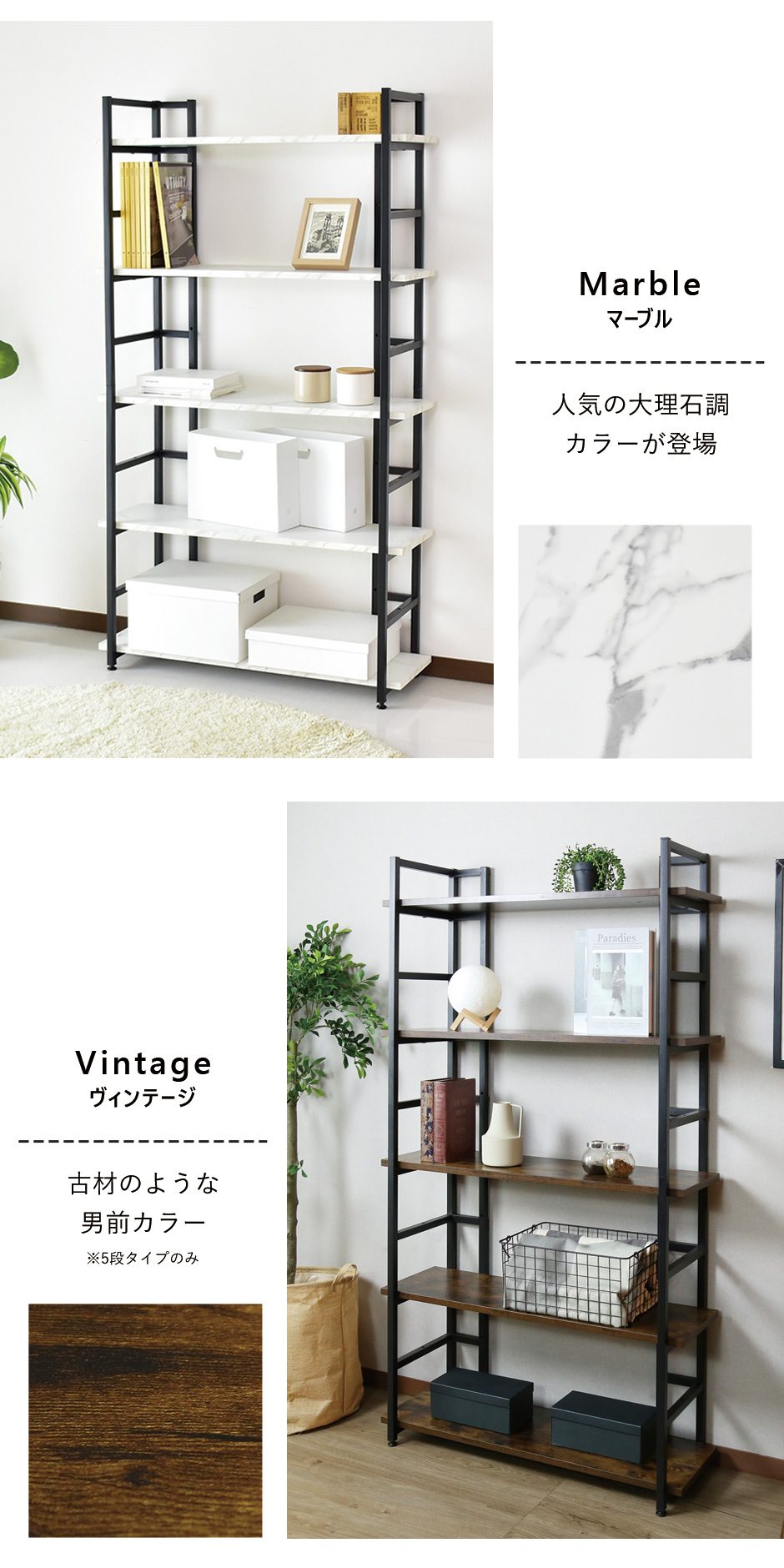 オープンラック オープンシェルフ ラック 棚 収納ラック 3段 4段 5段 収納棚 ディスプレイラック 木目調 大理石調 ヴィンテージ ガイル ドリス 新生活