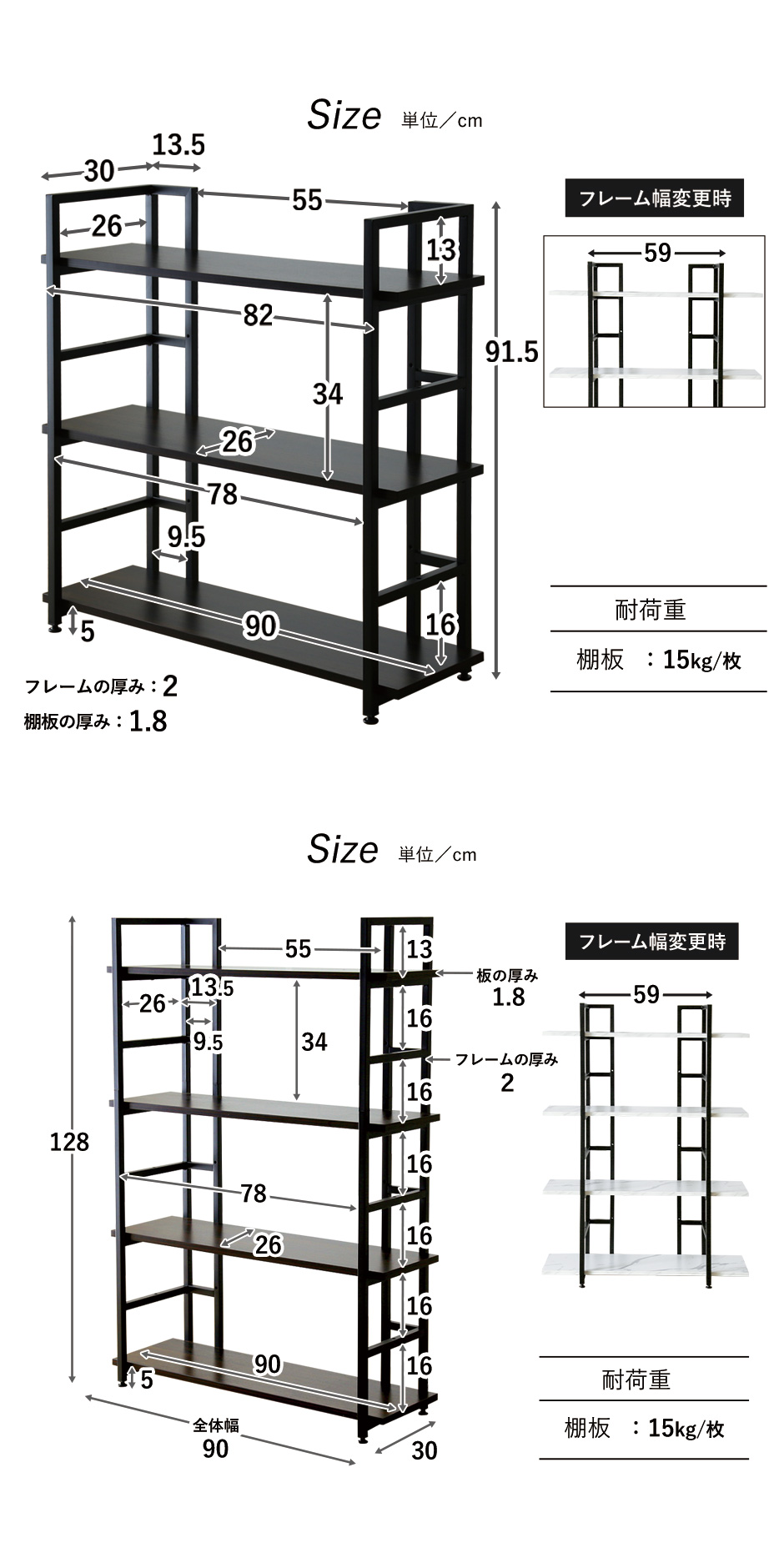 【4段タイプ】幅90×奥行30×高さ128(cm)
