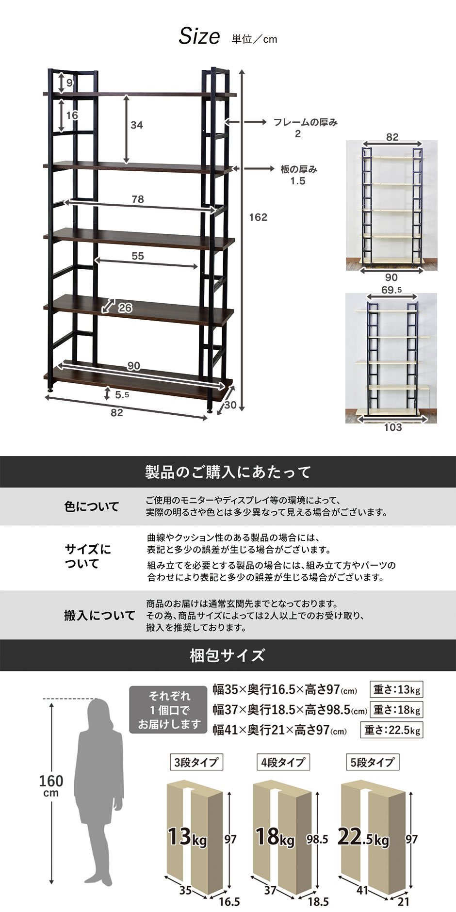 【5段タイプ】幅90×奥行30×高さ162(cm)